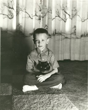 Siamese cats have gotten a bad reputation in certain circles and in come cases, rightly so. They can be territorial and temperamental and have been known to attack on occasion. They can also be extremely smart and loyal. Ours was the latter. We boys bonded with Blue Eyes. He could open the door of our bedroom at night by getting one paw underneath, and shaking it until it opened. He would then jump up on one of our beds. We received Blue Eyes as a small kitten from Doctor Paulsen, the local optometrist. At the same time, my friend Stan Kirk and his family acquired male and female kittens that they named Ahab and Jezebel. Our name was not nearly as creative, but Blue Eyes was intelligent and affectionate and we loved our cat. He even had his 15 minutes of fame, starring with my brother Dave on the cover of the school's magazine, Young Pilot. Not quite Rolling Stone, but it was a start!